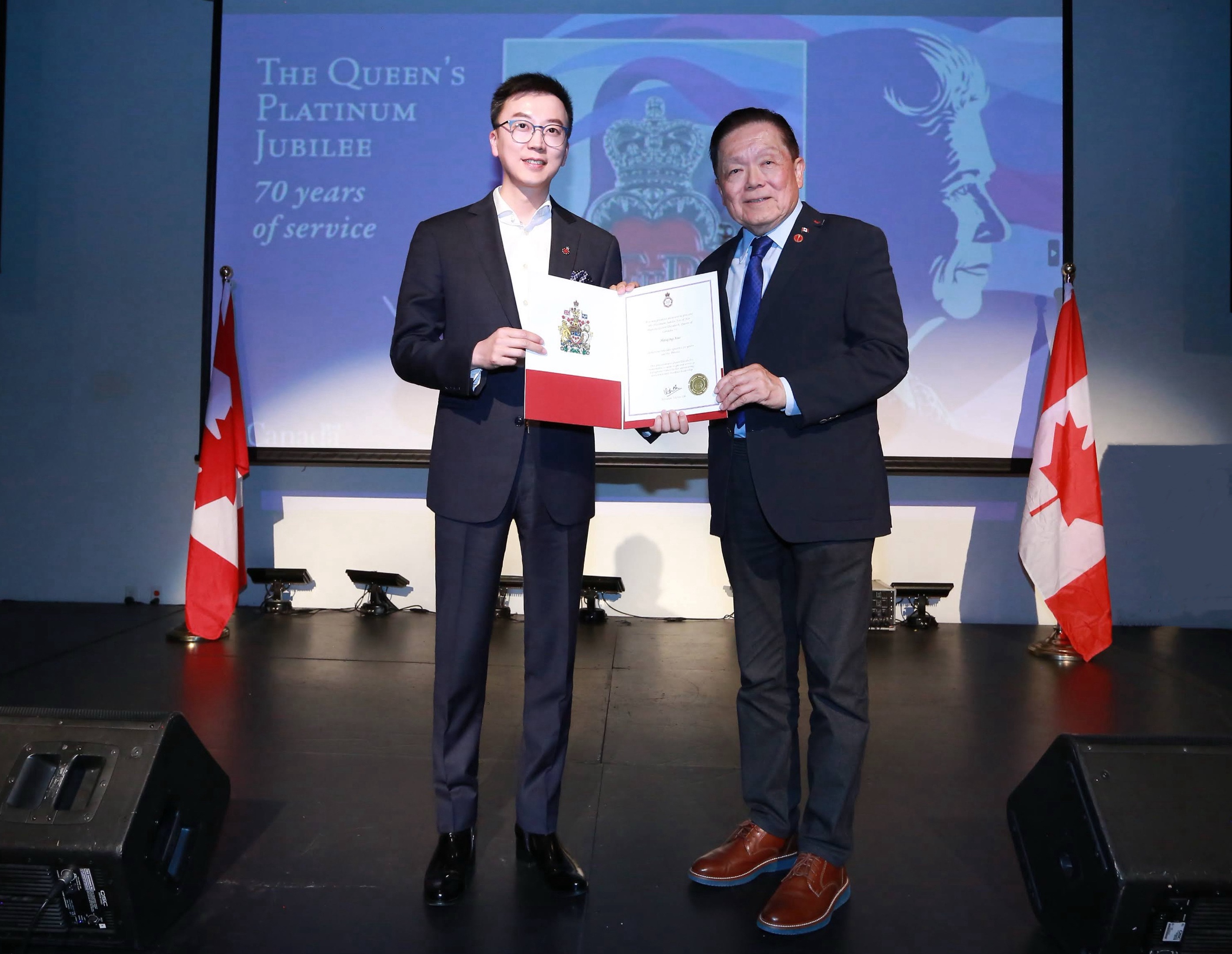2024年海青荣获加拿大英女王白金禧勋章并作为获奖代表发言,以表彰他移民加拿大这些年对国家和社区作出的贡献!
