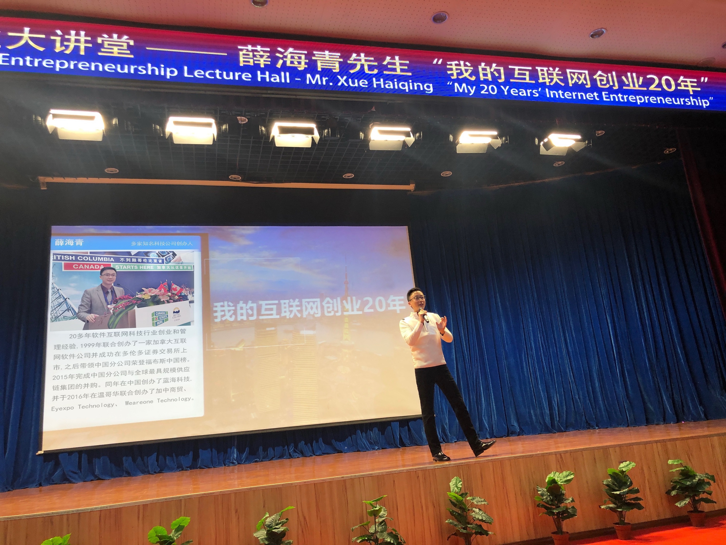 第一次看到关于薛海青的文字是这样的:20多年软件互联网科技行业创业和管理经验,1999年联合创办了一家加拿大互联网软件公司并成功上市,之后带领中国分公司荣登福布斯中国榜,2015年完成中国分公司与全球最具规模供应链集团的并购,之后创办了人工智能、虚拟现实、社群社交、区块链技术、新型电商、机器人等领域的多家知名科技公司。同时创办了海外青年人才创新创业俱乐部,成为国际创业导师,香港上市基金首席战略官,天使投资人。